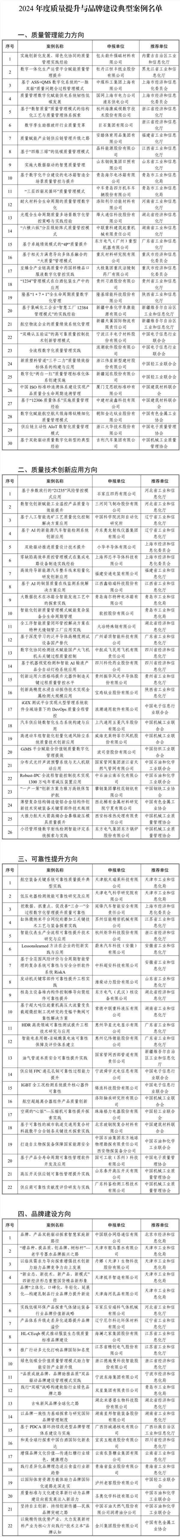根据《星空中国组织开展2024年度质量提升与品牌建设典型案例遴选工作的通知》(工信厅科函〔2024〕362号),经单位推荐、专家评审、征求意见、社会公示等环节,我部确定了100项质量提升与品牌建设典型案例,现予以公布(名单见附件)。