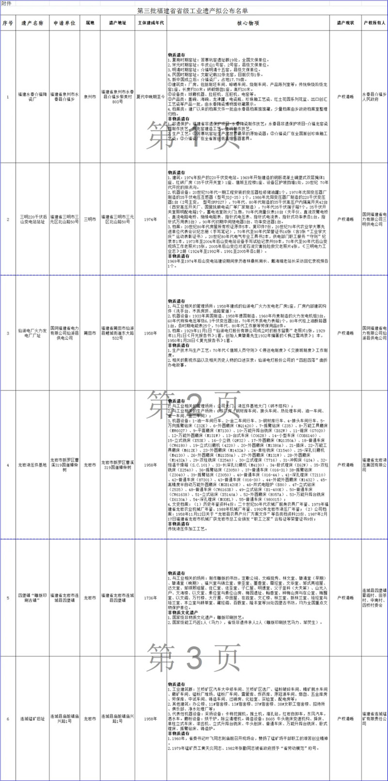 附件: 第三批福建省省级工业遗产拟公布名单